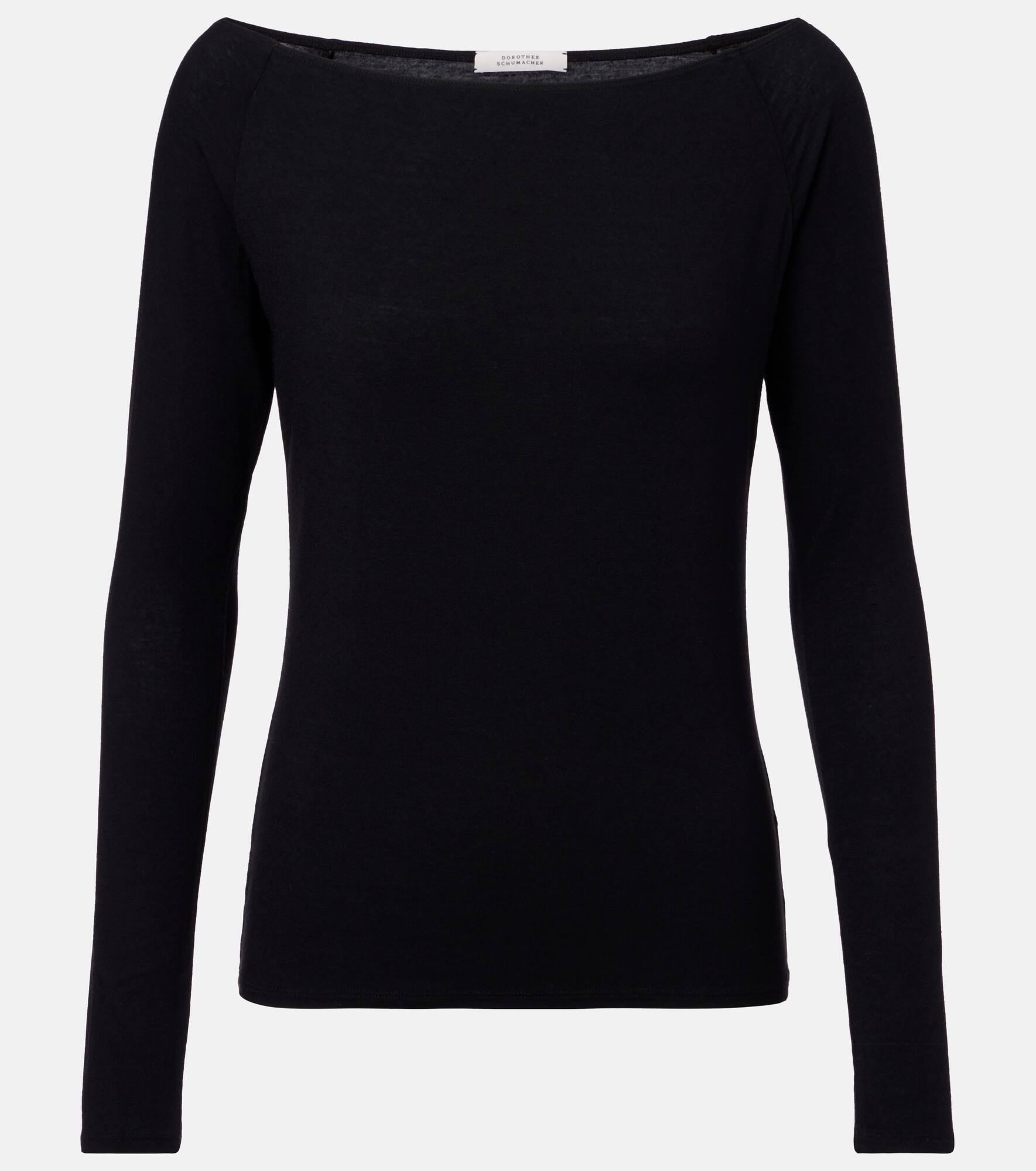 Product Details - Material: 86% modal, 10% cashmere, 4% elastane - Care instructions: hand wash - Made in Portugal - Designer color name: Pure Black - Item color: black - Item number: P01072716 Size & Fit - True to size - Off-the-shoulder - Cinched waist - Slightly stretchy fabric - Falls to the hip - The model seen in the picture is 178cm-5'10" and wearing a size 1