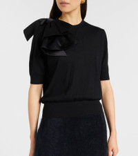 The Chic Merino sweater from Dorothee Schumacher is crafted from soft virgin wool, offering warmth with understated sophistication. This design features a ruffled shoulder detail, crewneck, mid-length sleeves, and ribbed trims for a refined finish. Product Details - Material: 100% virgin wool - Care instructions: machine wash cold - Made in China - Designer color name: Pure Black - Item color: black - Trim: 77% wool, 20% polyamide, 3% elastane - Material II: 100% polyester - Collar: crewneck - Cuff: ribbed - Hem: ribbed - Includes: brooch - Item number: P01099635 Size & Fit - True to size - Straight fit - Stretchy fabric - Slightly cropped - The model seen in the picture is 178cm-5'10" and wearing a size 1