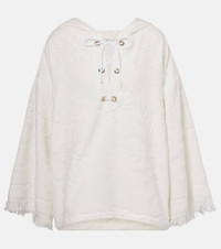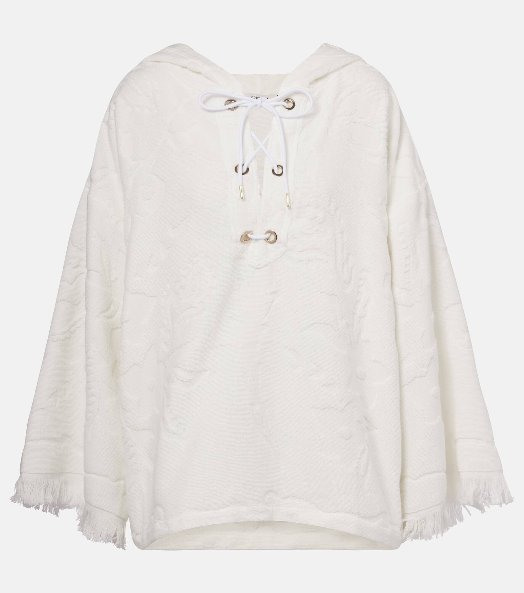 Dorothee Schumacher prefers to keep its designs refined and uncomplicated, allowing your natural confidence to shine through. Perfect for the beach and beyond, the Cosy Towelling cotton terry hoodie features fringed cuffs, lace-up detailing on the front, and an all-over floral jacquard pattern. Product Details - Material: 100% cotton - Care instructions: machine wash at 40 degrees - Made in Portugal - Designer color name: Camellia White - Item color: white - Item number: P01033952 Size & Fit - True to size - Dropped shoulders - Designed for a loose fit - Non-stretchy fabric - Falls below the hip - The model seen in the picture is 178cm-5'10" and wearing a size 1