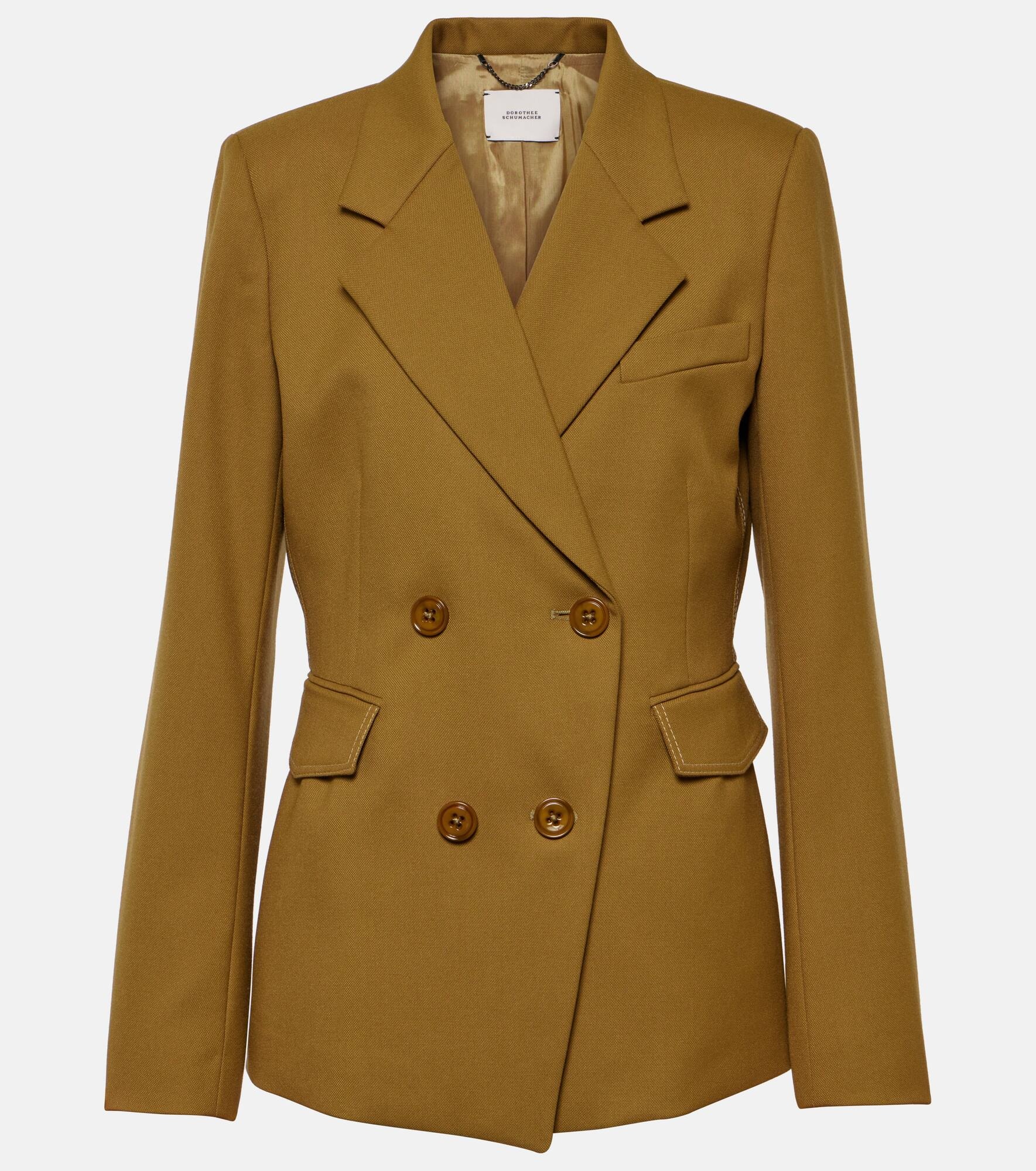 Product Details - Material: 69% polyester, 29% viscose, 2% elastane - Pockets: flap pockets - Closure: double-breasted buttoned front - Care instructions: dry clean - Made in Bulgaria - Designer color name: Olive Green - Lining: 60% acetate, 40% viscose - Sleeve lining: 68% acetate, 32% polyester - Item number: P00896125 Size & Fit - True to size - Cinched waist - Non-stretchy fabric - Falls to the hip - The model seen in the picture is 178cm-5'10" and wearing a size 1