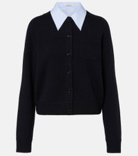 Dorothee Schumacher prefers to keep its designs refined and uncomplicated, allowing your natural confidence to shine through. The Elegant Statements cardigan is knitted from wool and cashmere and features a poplin collar for a layered effect. Product Details - Material: 70% wool, 30% cashmere - Care instructions: hand wash cold - Made in China - Designer color name: Pure Black - Item color: black - Material II: 67% wool, 28% cashmere, 4% polyamide, 1% elastane - Details: 97% cotton, 3% elastane - Material III: 100% viscose - Contains non-textile parts of animal origin - Detachable collar - Cuff: ribbed - Pockets: rounded chest pocket - Closure: buttoned front - Hem: ribbed - Item number: P01120069 Size & Fit - True to size - Straight fit - Partly stretchy fabric - Slightly cropped - The model seen in the picture is 178cm-5'10" and wearing a size 1