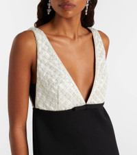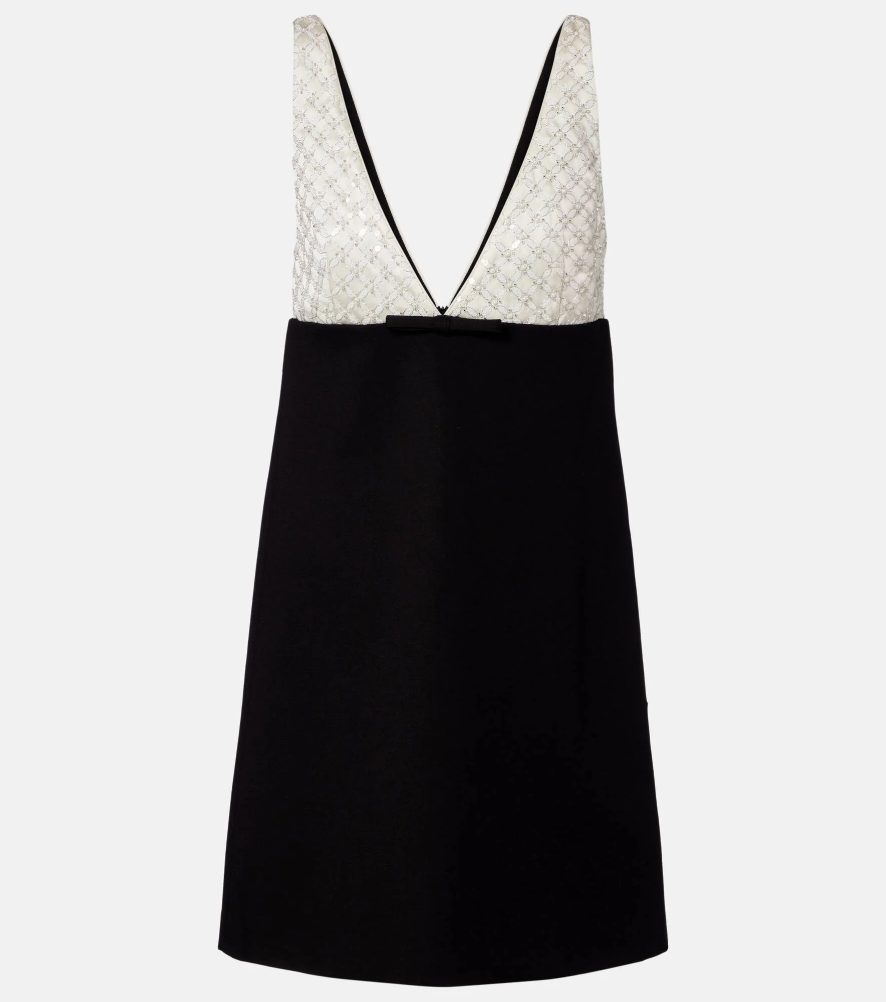 The Emotional Essence minidress from Dorothee Schumacher showcases a charming color contrast between the sequined bodice and the skirt. The design features a V-neckline finished with a sophisticated bow. Product Details - Material: 67% viscose, 28% polyamide, 5% elastane - Care instructions: dry clean - Made in China - Color: black - Designer color name: Black-Off White - Item color: black, white - Material II: 87% polyester, 13% viscose - Lining: 62% viscose, 32% polyamide, 6% elastane - Collar: V-neck - Closure: zipped back - Item number: P01120042 Size & Fit - Fits large to size - we recommend trying one size smaller - Low back - Cinched waist - Non-stretchy fabric - The model seen in the picture is 178cm-5'10" and wearing a size 0