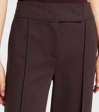 The Emotional Essence pants by Dorothee Schumacher are a timeless must-have in your wardrobe. Crafted in heavyweight fabric, the pair is cut into a wide-leg silhouette with a high stretch that ensures perfect comfort and adaptability. Product Details - Material: 67% viscose, 28% polyamide, 5% elastane - Care instructions: machine wash at 30 degrees - Made in China - Designer color name: Dark Chocolate - Item color: brown - Lining: 100% polyester - Pocket lining: 57% viscose, 43% polyester - Pockets: side slit pockets, back pockets - Closure: zip and hook fastening - Item number: P01099624 Size & Fit - True to size - Slightly stretchy fabric - Wide-leg - Unhemmed for tailoring - The model seen in the picture is 178cm-5'10" and wearing a size 1