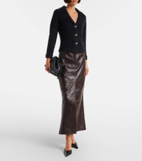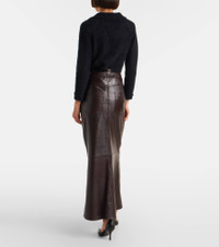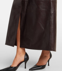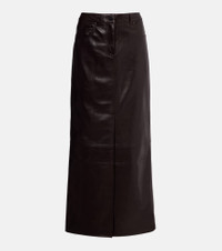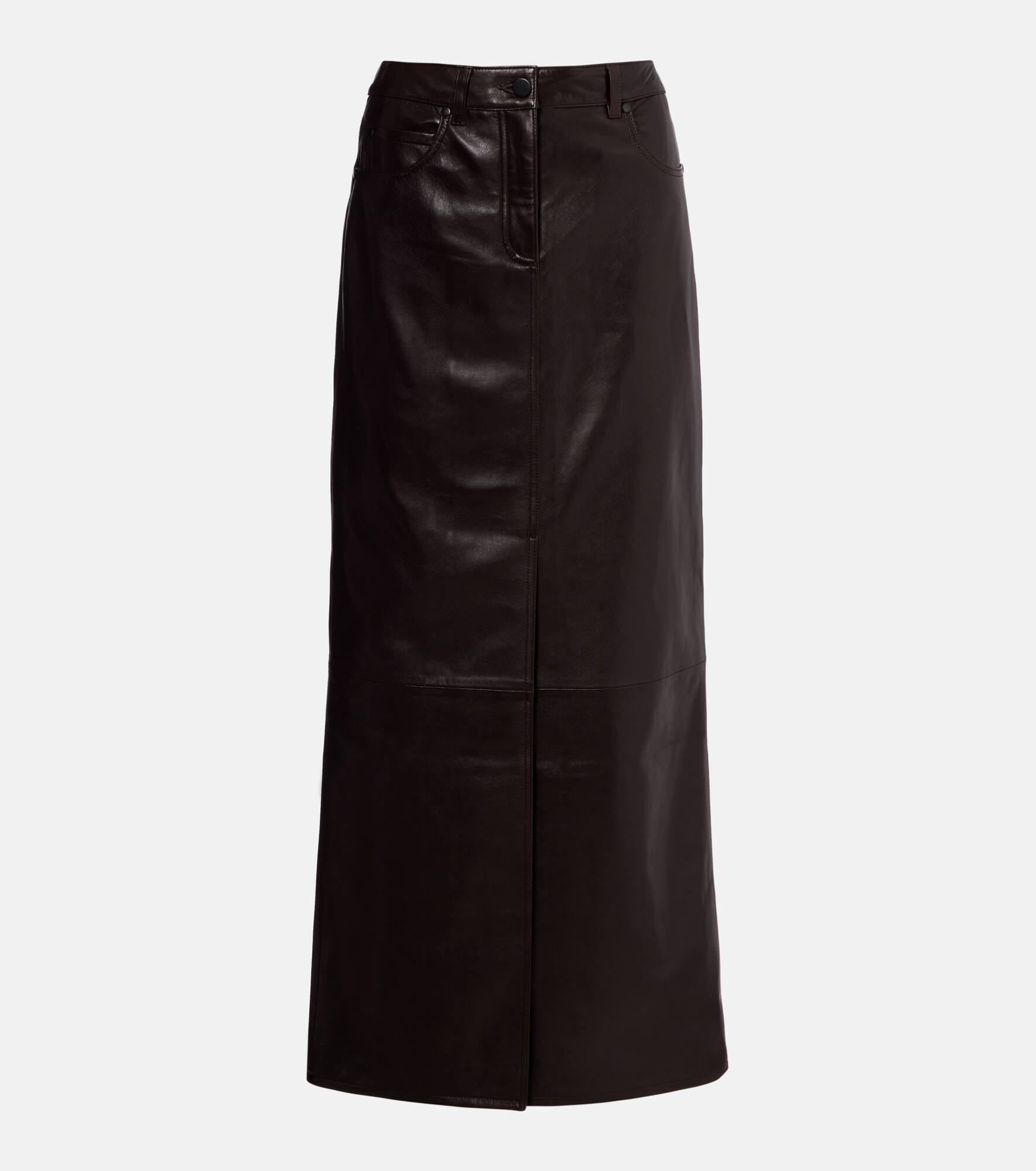 Dorothee Schumacher prefers to keep its designs refined and uncomplicated, allowing your natural confidence to shine through. This maxi skirt is crafted from lamb leather and designed with a high-rise waistline and a front slit. Product Details - Material: 100% lamb leather - Care instructions: specialist clean - Made in Turkey - Designer color name: Black Chocolate - Item color: brown - Lining: 100% polyester - Contains non-textile parts of animal origin - Pockets: five pockets - Closure: zip and button fastening - Belt loops - Short vent - Item number: P01099647 Size & Fit - True to size - Fitted - Non-stretchy fabric - High-waisted - slit length 56cm-22" - The model seen in the picture is 178cm-5'10" and wearing a size 1