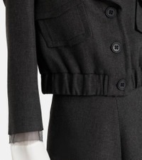 Dorothee Schumacher prefers to keep its designs refined and uncomplicated, allowing your natural confidence to shine through. The Layered Coolness jacket features a cropped silhouette with an elasticated waistband, flap pockets, and organza-trimmed cuffs. Product Details - Material: 62% viscose, 20% polyacrylic, 10% polyester, 8% wool - Care instructions: dry clean - Made in Bulgaria - Color: grey - Designer color name: Charcoal Melange - Item color: gray - Details: 100% polyester - Lining: 100% cupro - Sleeve lining: 68% acetate, 32% polyester - Shoulder pads - Cuff: two buttons - Pockets: flap pockets - Closure: buttoned front - Hem: elasticated - Item number: P01120057 Size & Fit - True to size - Shoulder pad inserts - Straight fit - Elasticated hem - Non-stretchy fabric - Slightly cropped - The model seen in the picture is 178cm-5'10" and wearing a size 1