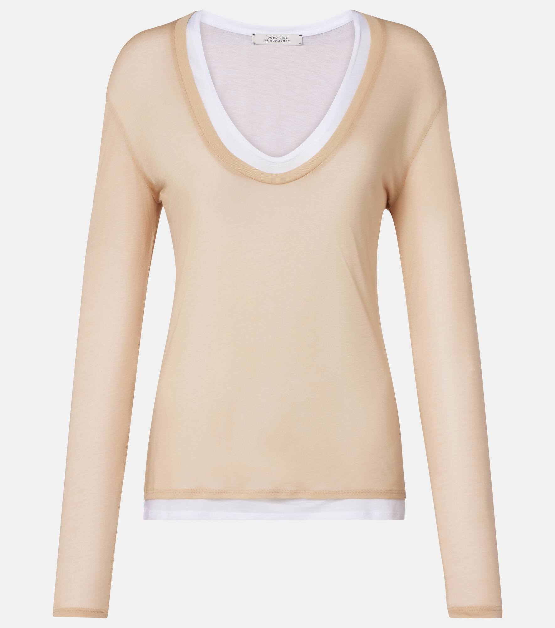 Dorothee Schumacher prefers to keep its designs refined and uncomplicated, allowing your natural confidence to shine through. This top consists of two layers and features a V-neck and fitted silhouette. Product Details - Material: 70% lyocell, 30% cotton - Care instructions: machine wash at 30 degrees - Made in Portugal - Designer color name: Tender Beige - Item color: beige, white - Collar: V-neck - Item number: P01072765 Size & Fit - True to size - Straight fit - Stretchy fabric - Falls to the hip - The model seen in the picture is 178cm-5'10" and wearing a size 1