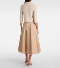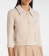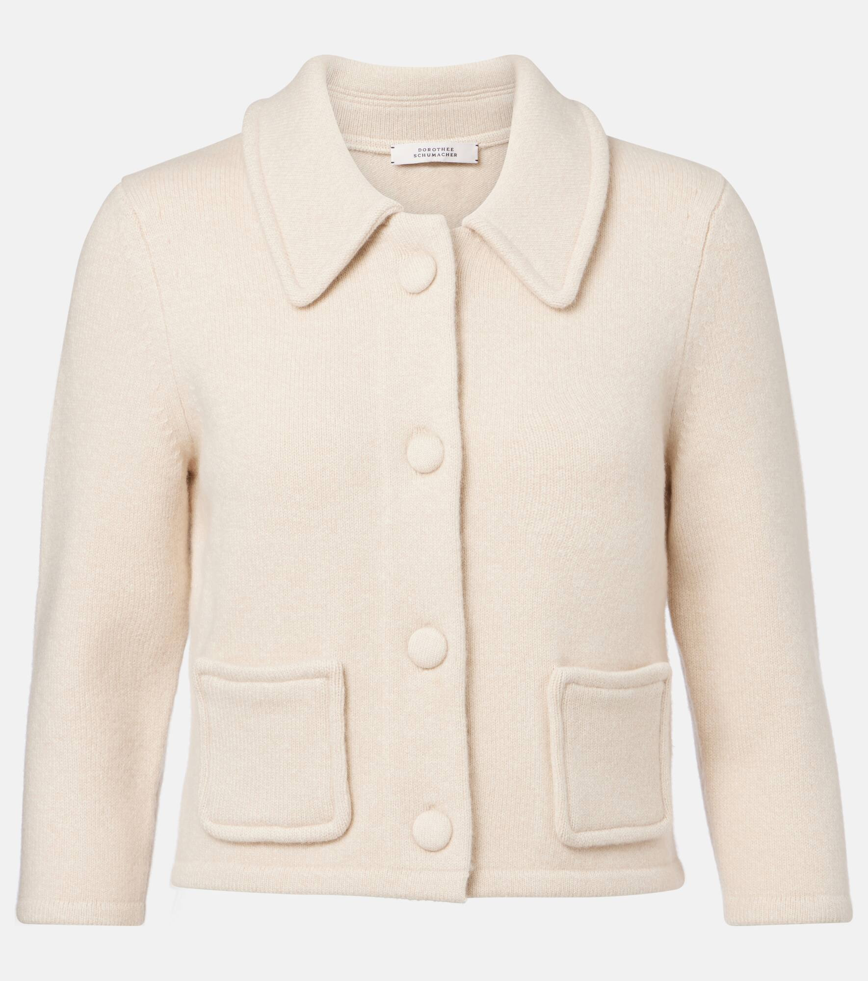 Dorothee Schumacher prefers to keep its designs refined and uncomplicated, allowing your natural confidence to shine through. The Modern Statement jacket is thoughtfully crafted from a soft wool and cashmere-blend for a cropped fit with 1/2-length sleeves, patch pockets, a buttoned front, and oversized point collar. Product Details - Material: 66% wool, 28% cashmere, 5% polyamide, 1% elastane - Care instructions: machine wash cold - Made in China - Designer color name: Angora - Item color: beige - Pockets: patch pockets - Closure: buttoned front - Item number: P01072710 Size & Fit - True to size - Straight fit - Stretchy fabric - Cropped - The model seen in the picture is 178cm-5'10" and wearing a size 1