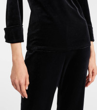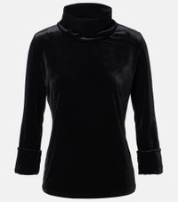 Dorothee Schumacher prefers to keep its designs refined and uncomplicated, allowing your natural confidence to shine through. The Soft Elegance velvet top features an elegant turtleneck, three-quarter sleeves, and sophisticated folded cuffs. Product Details - Material: 95% polyester, 5% elastane - Care instructions: dry clean - Made in China - Designer color name: Pure Black - Item color: black - Collar: turtleneck - Sleeves: ¾ length - Item number: P01099644 Size & Fit - True to size - Shoulder pad inserts - Close fit at the neck - Straight fit - Slightly stretchy fabric - Falls to the hip - The model seen in the picture is 178cm-5'10" and wearing a size 1