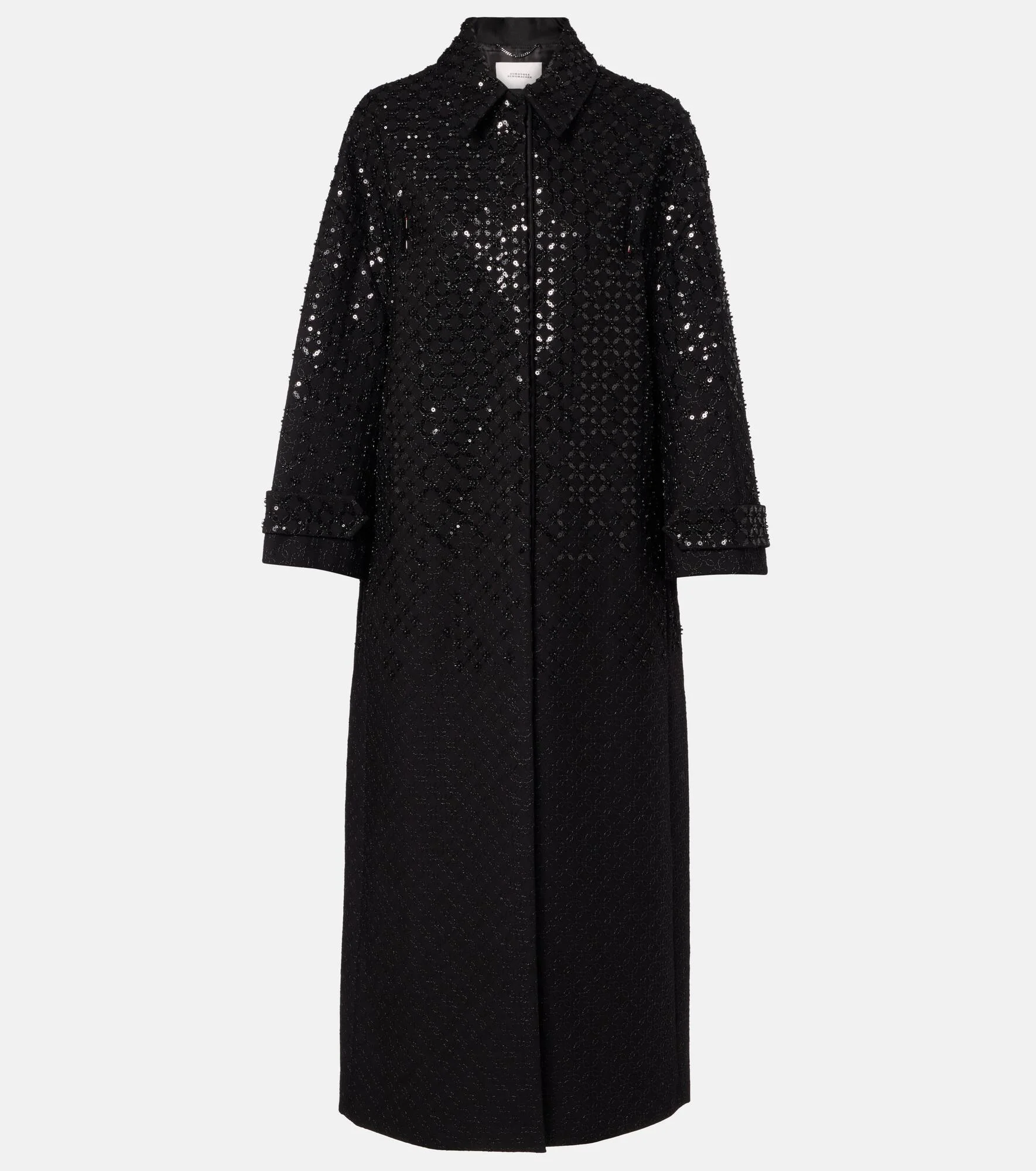 Dorothee Schumacher prefers to keep its designs refined and uncomplicated, allowing your natural confidence to shine through. The Sparkling Emotions coat comes in a single-breasted silhouette and is complete with tonal sequins that catch the light. Product Details - Material: 67% viscose, 28% polyamide, 5% elastane - Care instructions: dry clean - Made in China - Designer color name: Pure Black - Item color: black - Lining: 100% viscose - Details: 100% polyester - Collar: classic (Straight point) - Pockets: side slit pockets, internal pocket - Closure: concealed buttoned front - Item number: P01120040 Size & Fit - True to size - Dropped shoulders - Designed for a loose fit - Slightly stretchy fabric - The model seen in the picture is 178cm-5'10" and wearing a size 1