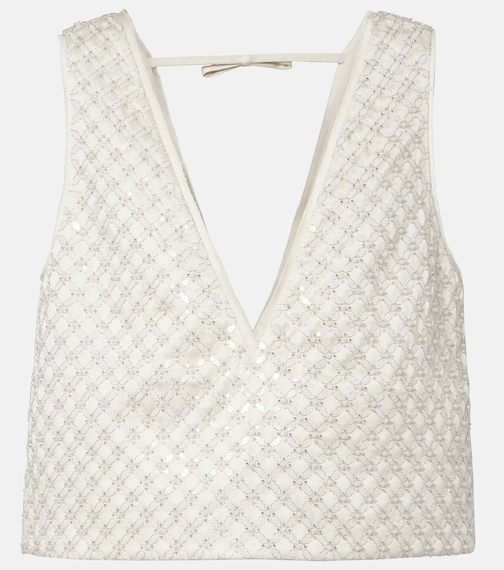 Dorothee Schumacher prefers to keep its designs refined and uncomplicated, allowing your natural confidence to shine through. The Sparkling Statement top is aptly named for its dazzling array of sequins. Product Details - Material: 87% polyester, 13% viscose - Care instructions: dry clean - Made in China - Color: white - Designer color name: Pearl - Item color: white - Lining: 100% polyester - Item number: P01120043 Size & Fit - Fits large to size - we recommend trying one size smaller - Low back - Designed for a loose fit - Non-stretchy fabric - Slightly cropped - The model seen in the picture is 178cm-5'10" and wearing a size 1