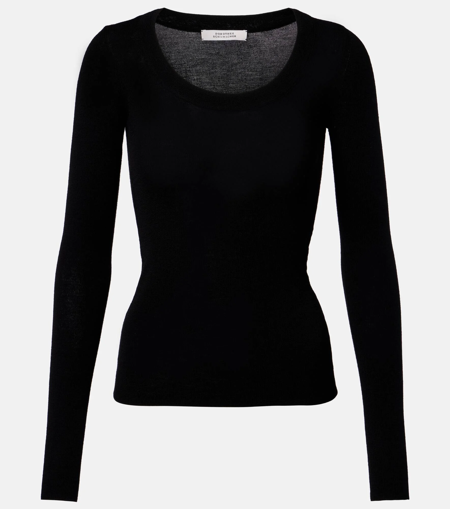 Dorothee Schumacher prefers to keep its designs refined and uncomplicated, allowing your natural confidence to shine through. This top is made from virgin wool to a close fit, accentuated by fine ribbing and a scoop neckline. Product Details - Material: 100% virgin wool - Care instructions: hand wash cold - Made in China - Designer color name: Pure Black - Item color: black - Item number: P01120038 Size & Fit - True to size - Fitted - Stretchy fabric - Falls to the hip - The model seen in the picture is 178cm-5'10" and wearing a size 1