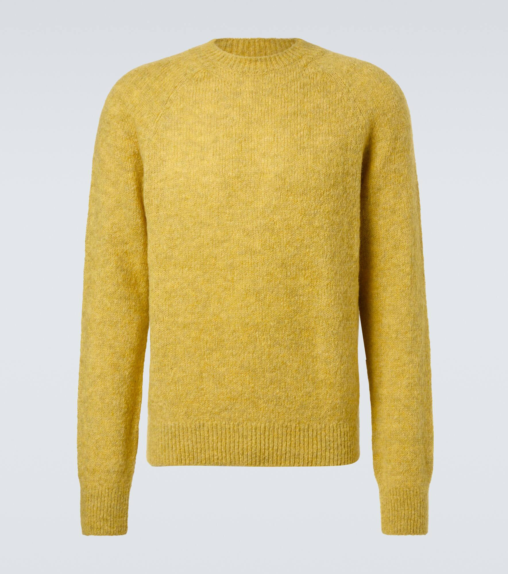 This sweater from Dries Van Noten is made from a soft alpaca and wool-blend. The crewneck design showcases a vibrant tone and ribbed-knit detailing along the neckline, hem, and cuffs. Product Details - Material: 60% alpaca wool, 25% wool (merino wool), 15% polyamide - Care instructions: hand wash - Made in Belgium - Designer color name: Mustard - Item color: yellow - Collar: crewneck - Cuff: ribbed - Hem: ribbed - Item number: P01086518 Size & Fit - True to size - Straight fit - Stretchy fabric - Falls to the hip - Height of model is 188cm-74" and wears a size L