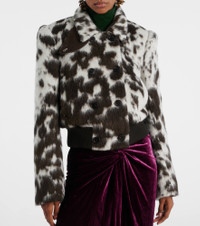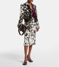 Cow-print wool-blend double-breasted jacket Leopard print