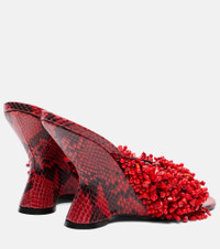 Step out to stand out in these wedge mules from Dries Van Noten. Decorated with a striking array of beads, this pair is crafted from snake-printed leather that's sure to catch the eye. Product Details - Upper: leather - Lining: leather - Sole: leather insole and sole - Toe shape: round open toe - Made in Italy - Includes: shoe box, dust bags - Designer color name: Vermillon - Item color: red - Contains non-textile parts of animal origin - Item number: P01016147 Size & Fit - True to size - European sizes - 10,5cm-4" heel (size EU 38)