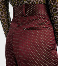Dries Van Noten creates collections that are always unique. These wide-leg pants are tailored to a high-rise silhouette, and the sleek style is finished with a detachable belt and all-over print. Product Details - Material: 100% viscose - Care instructions: dry clean - Made in Morocco - Designer color name: Burgundy - Item color: burgundy - Closure: zipper fly, button and hook fastenings - Pockets: side slit pockets, back pockets - Belt loops - Detachable belt - Item number: P01092141 Size & Fit - True to size - Adjustable at the waist - Non-stretchy fabric - Wide-leg - The model seen in the picture is 178cm-5'10" and wearing a size FR 36