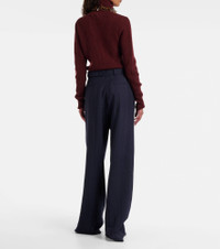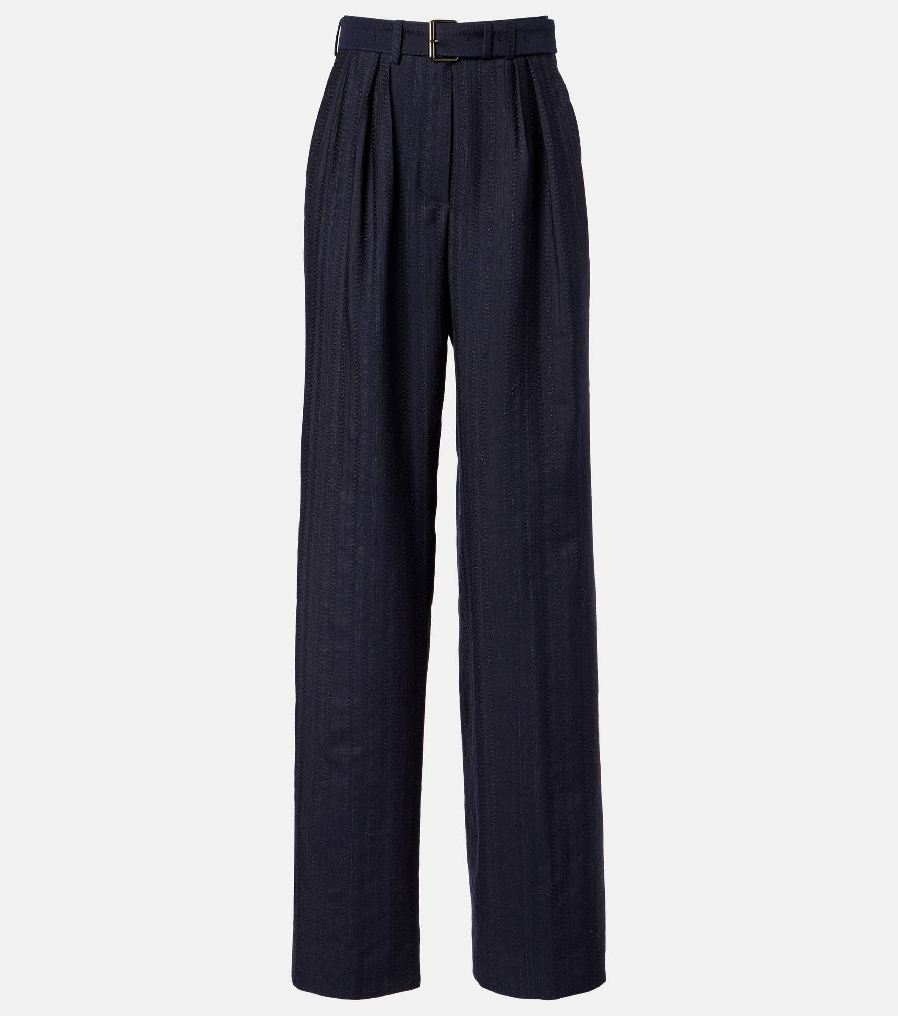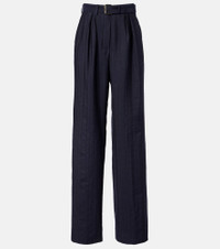 These Dries Van Noten pants are crafted from a soft wool blend and tailored to a wide-leg silhouette. The high-rise design is complemented by a tonal belt and refined pleats at the front. Product Details - Material: 99% wool, 1% elastane - Care instructions: dry clean - Made in Morocco - Designer color name: Navy - Item color: blue - Closure: zipper fly, button and hook fastenings - Pockets: side slit pockets, back pockets - Belt loops - Detachable belt - Item number: P01092142 Size & Fit - Fits large to size - we recommend trying one size smaller - Adjustable at the waist - Non-stretchy fabric - Wide-leg - High-waisted - The model seen in the picture is 178cm-5'10" and wearing a size FR 34