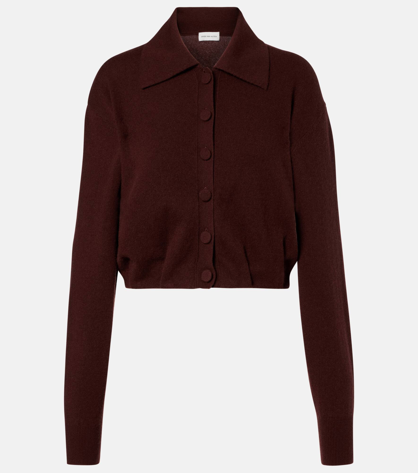 Invest in plush knitwear to keep you cozy during cold days, including this cardigan from Dries Van Noten. The style is made from cashmere yarns for optimal warmth and features a classic polo collar. Product Details - Material: 100% cashmere - Care instructions: dry clean - Made in China - Designer color name: Brown - Item color: brown - Collar: polo collar - Cuff: ribbed - Closure: buttoned front - Item number: P01093170 Size & Fit - True to size - Straight fit - Stretchy fabric - Cropped - The model seen in the picture is 178cm-5'10" and wearing a size XS