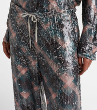 There's no such thing as too much shimmer, and these Dries Van Noten pants prove it. Crafted from fluid viscose with a checked motif, the style is covered in sequins for a statement-making walk. Product Details - Material: 100% viscose - Care instructions: dry clean - Made in India - Designer color name: Bottle - Item color: green, pink, blue - Lining: 100% viscose - Elasticated drawstring waist - Item number: P01092151 Size & Fit - Fits large to size - we recommend trying one size smaller - Elasticated waist - Adjustable at the waist - Non-stretchy fabric - Wide-leg - The model seen in the picture is 178cm-5'10" and wearing a size FR 34