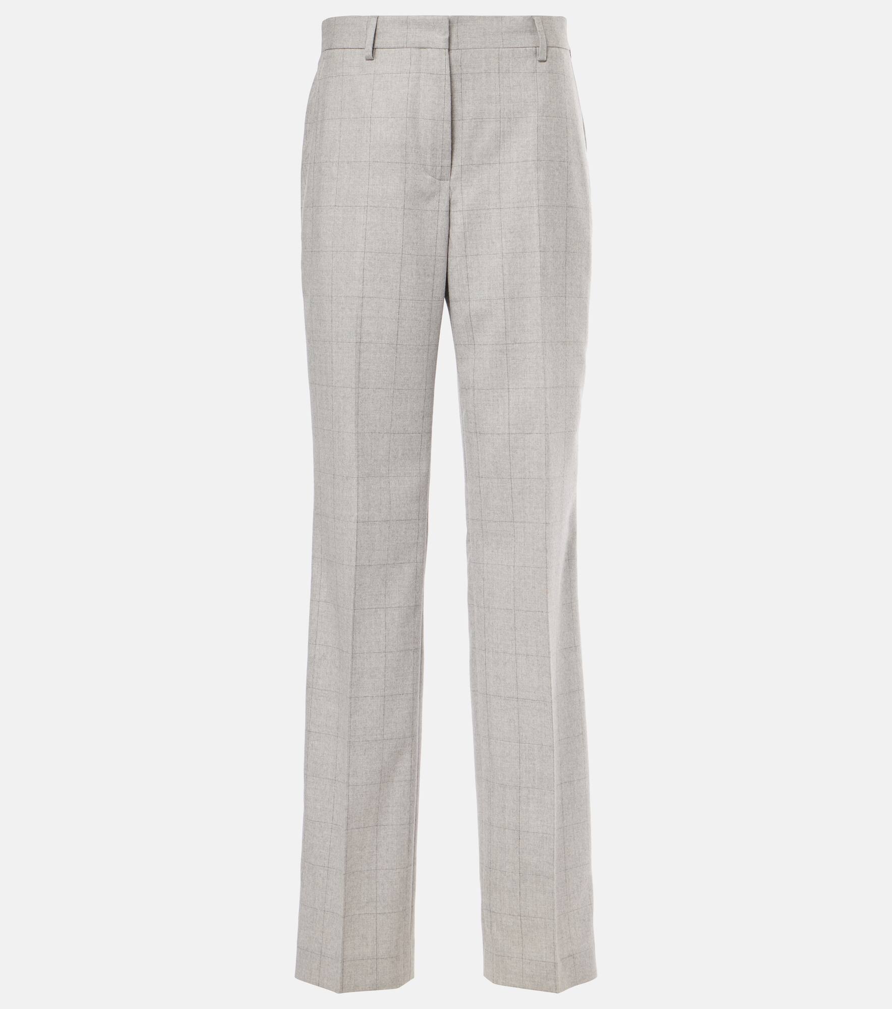Checked wool-flannel straight-leg pants