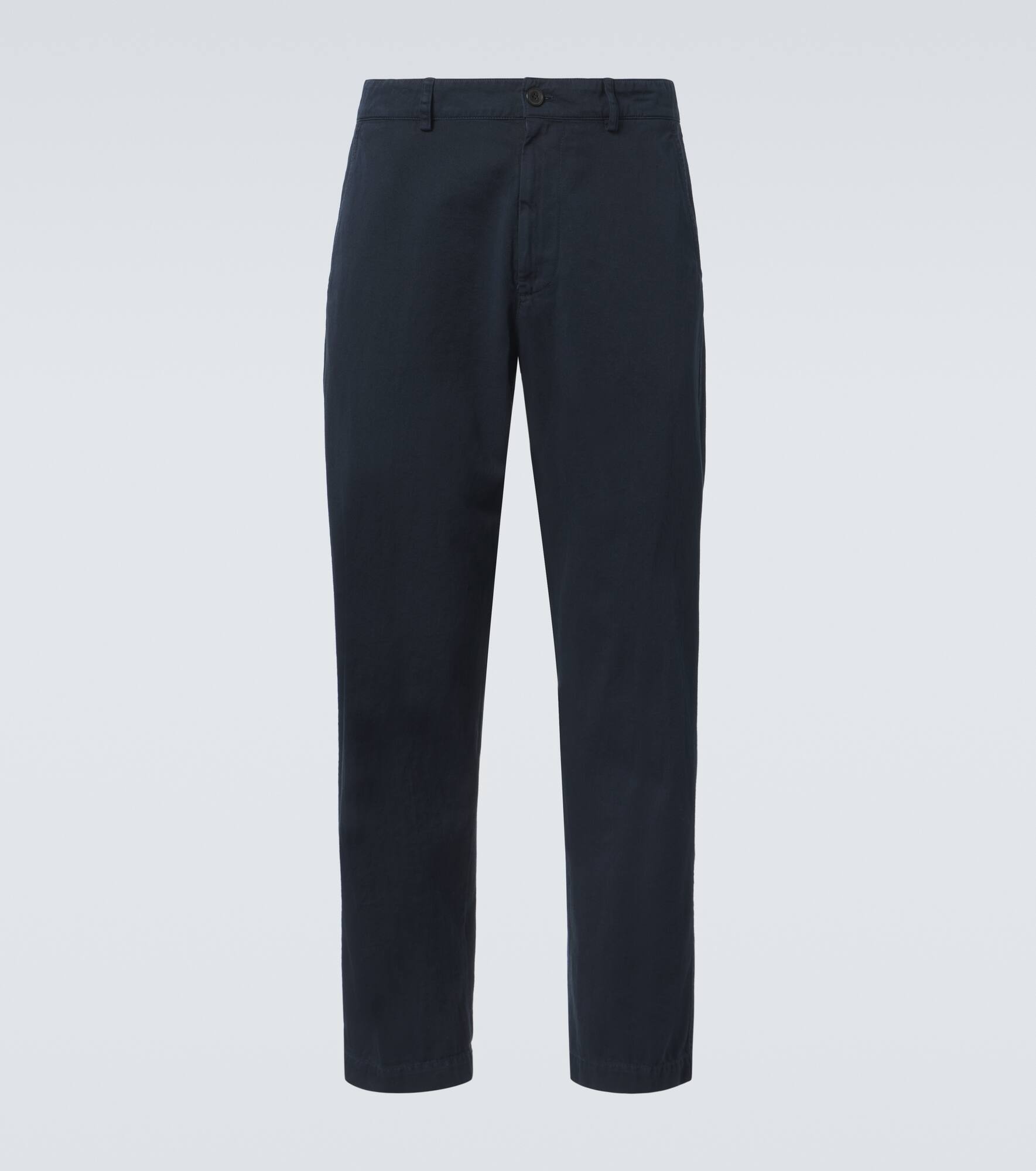 Juxtaposing a poetic sensibility with intelligent tailoring, Dries Van Noten creates styles that are always unique. Crafted from soft cotton, these chinos feature a straight leg fit with belt loops and side-slit pockets. Product Details - Material: 100% cotton - Care instructions: machine wash at 30 degrees - Made in Romania - Designer color name: Navy - Item color: blue - Closure: zip and button fastening - Pockets: side slit pockets, back pockets - Item number: P01065436 Size & Fit - True to size - Non-stretchy fabric - Straight leg - The model in the picture is 185cm-6'1" and wearing a size 50 - Height of model is 190cm-75" and wears a size 50