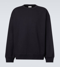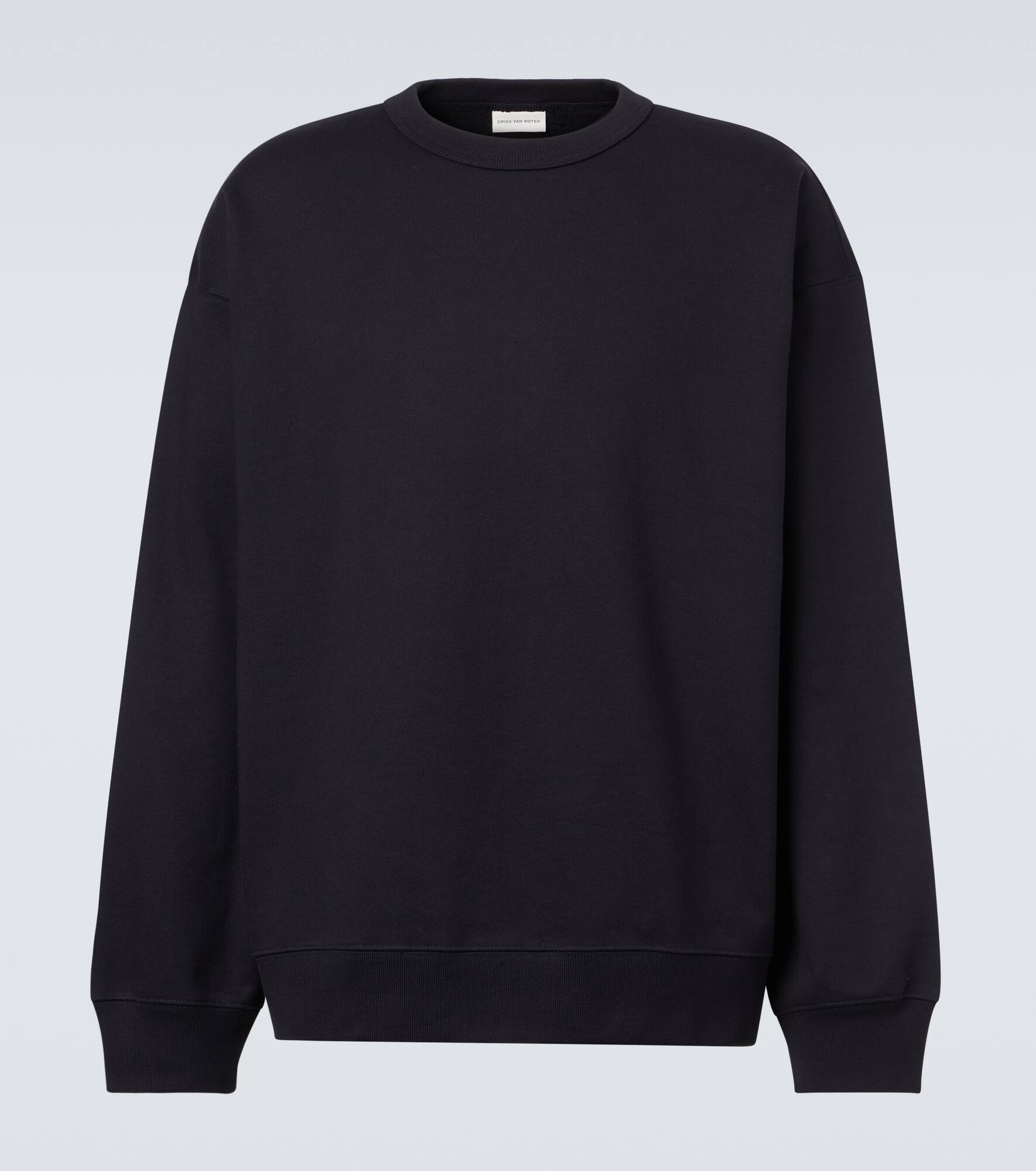 Juxtaposing a poetic sensibility with intelligent tailoring, Dries Van Noten creates styles that are always unique. A cold-weather essential, this sweatshirt is made from thick, navy-hued cotton jersey. Product Details - Material: 100% cotton - Care instructions: machine wash at 30 degrees - Made in Turkey - Designer color name: Navy - Item color: blue - Collar: crewneck - Hem: ribbed - Cuff: ribbed - Item number: P01086506 Size & Fit - True to size - Dropped shoulders - Oversized - Stretchy fabric - Falls below the hip - Height of model is 189cm-74.5" and wears a size L