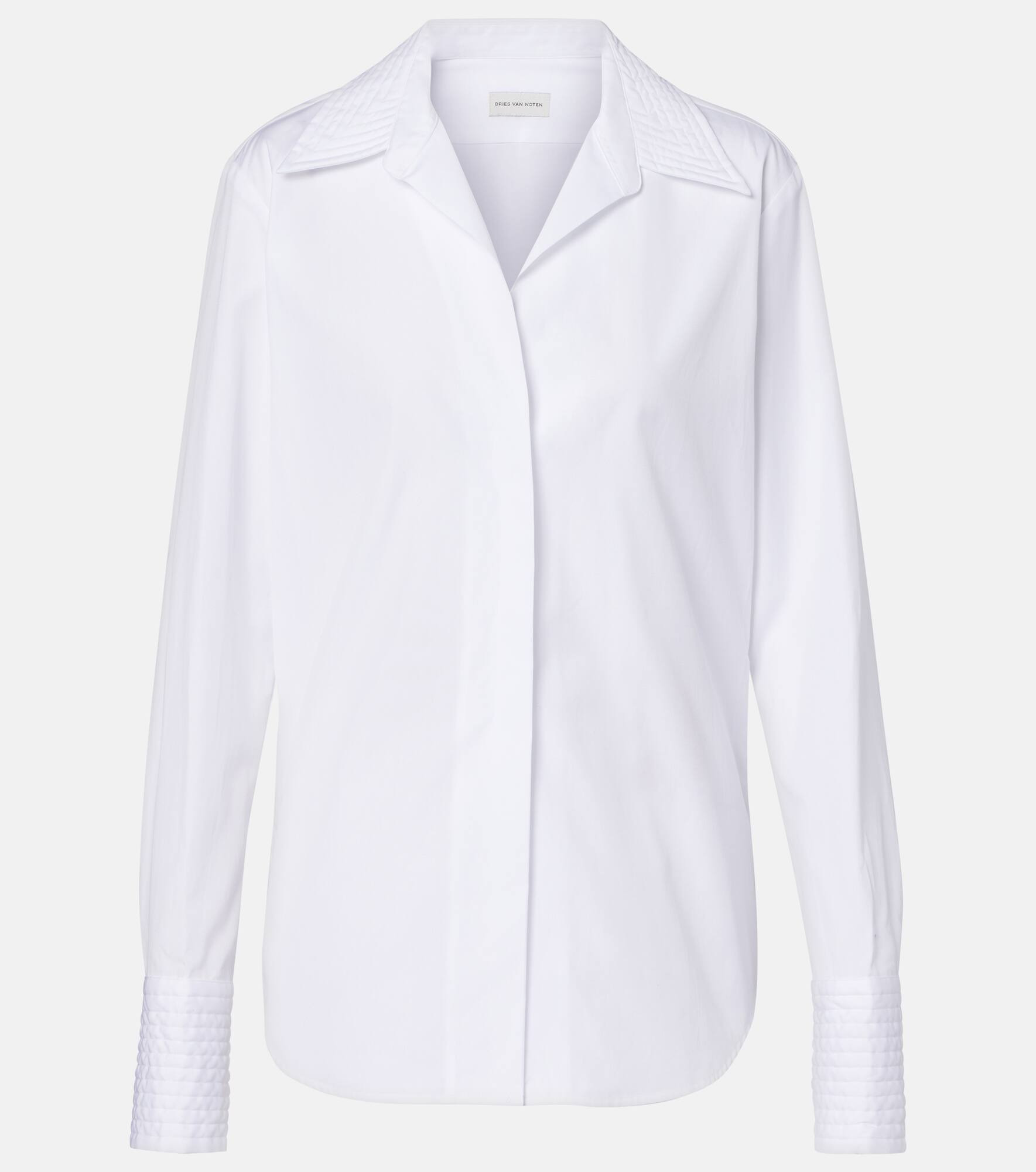 Build your wardrobe around chicly understated staples like this Dries Van Noten shirt. Made from pure cotton, the style is complete with a one-piece collar, buttoned cuffs, and a rounded hem. Product Details - Material: 100% cotton - Care instructions: machine wash at 30 degrees - Made in Hungary - Designer color name: White - Item color: white - Collar: one-piece - Closure: concealed button placket - Cuff: buttoned - Hem: rounded - Item number: P01092127 Size & Fit - True to size - Straight fit - Non-stretchy fabric - Falls below the hip - The model seen in the picture is 178cm-5'10" and wearing a size FR 36