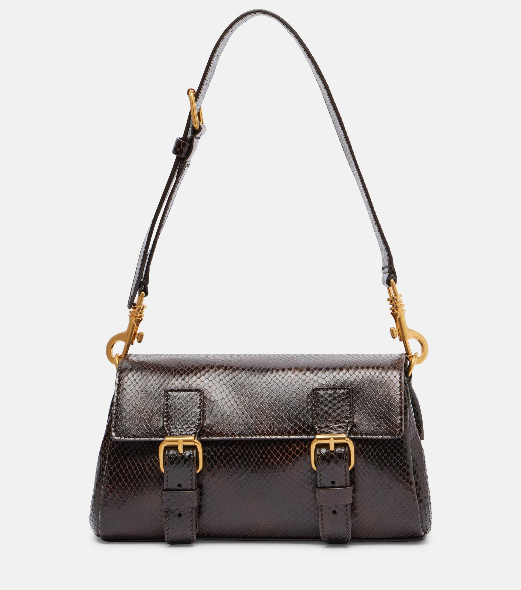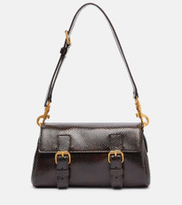 Juxtaposing a poetic sensibility with a modern vision, Dries Van Noten creates designs that are always unique. This shoulder bag is crafted from leather with a croc-effect and boasts a detachable strap and a two-buckle front flap. Product Details - Material: leather - Lining: fabric, leather - Made in Italy - Designer color name: Dark Brown - Item color: brown - Hardware color: gold - Detachable shoulder strap - Internal details: two internal compartments, internal zipped pouch, internal slot pocket - Closure: magnetic fastening - Item number: P01054866 Size & Fit - Height 15cm-6" - Width 33cm-13" - Depth 10cm-4" - Adjustable shoulder strap - Max. length shoulder strap 72cm-28.5"