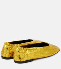 Croc-effect metallic leather ballet flats