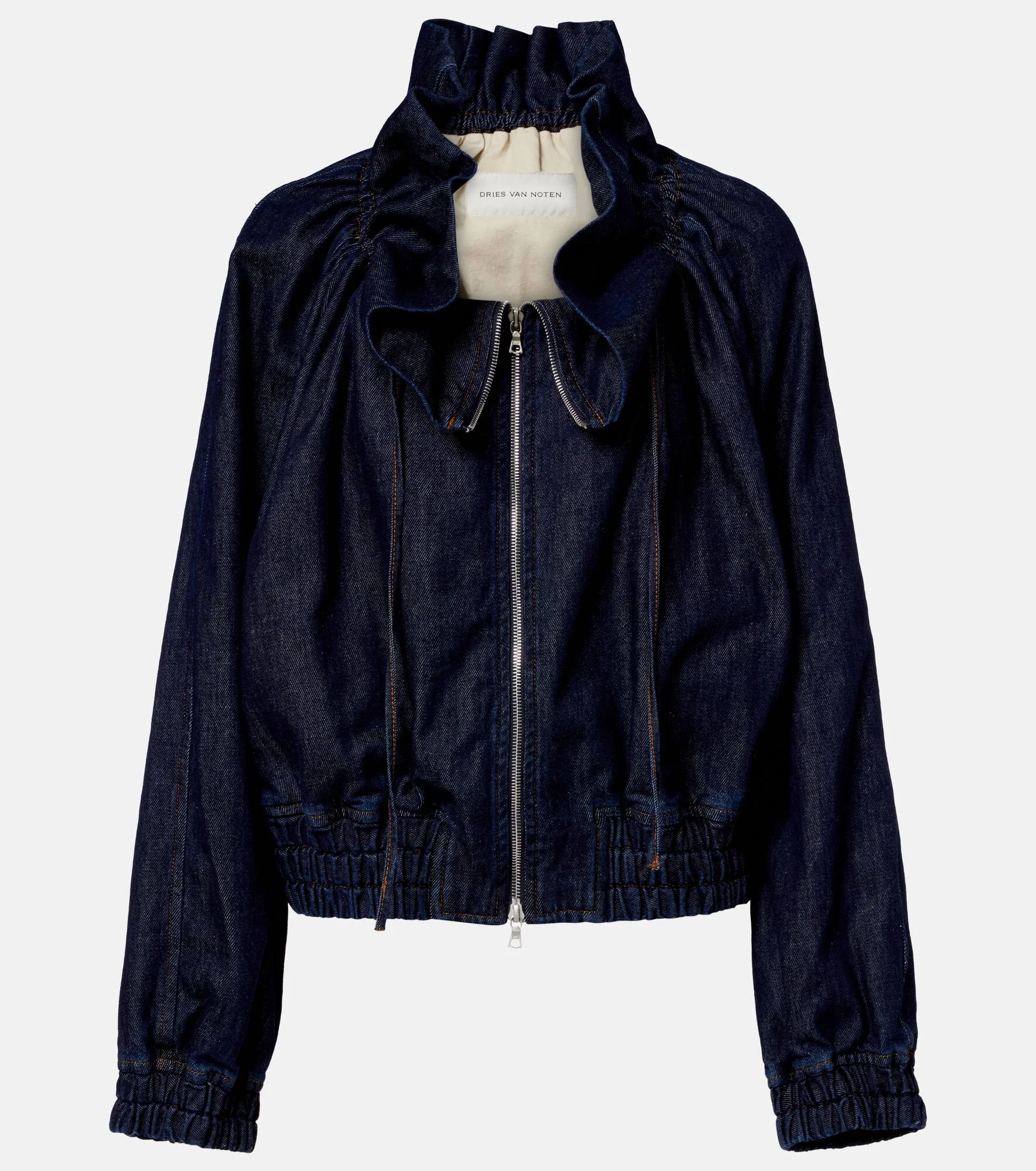 Juxtaposing a poetic sensibility with intelligent tailoring, Dries Van Noten creates styles that are always unique. This bomber jacket is made from dark blue denim and detailed with a sculptural drawstring collar. Product Details - Material: 100% cotton - Care instructions: machine wash at 30 degrees - Made in Tunisia - Color: blue - Designer color name: Indigo - Closure: two-way zipped front - Drawstring collar - Pockets: side slit pockets - Hem: elasticated - Cuff: elasticated - Item number: P01126853 Size & Fit - True to size - Designed for a loose fit - Elasticated hem - Non-stretchy fabric - The model seen in the picture is 178cm-5'10" and wearing a size FR 36