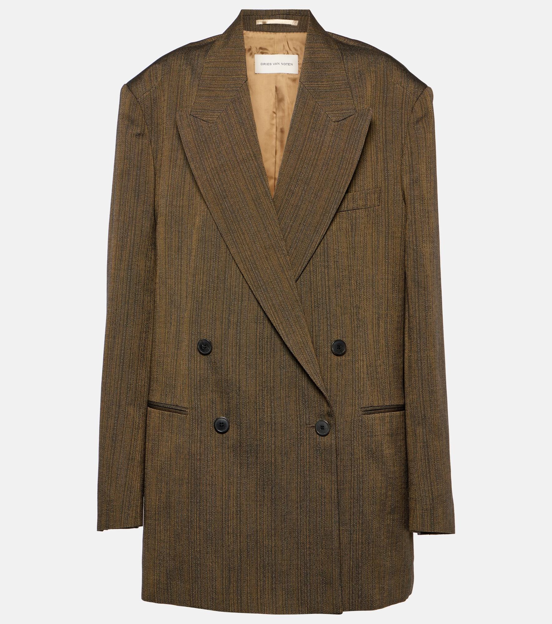 Product Details - Material: 54% cotton, 24% acetate, 19% silk, 3% polyamide - Peak lapel - Care instructions: dry clean - Made in Morocco - Designer color name: Yellow - Lining: 100% viscose - Closure: double-breasted (four buttons) - Pockets: welt pockets, breast pocket - Item number: P00915630 Size & Fit - Fits large to size - we recommend trying one size smaller - Oversized shoulders - Shoulder pad inserts - Oversized - Non-stretchy fabric - Falls below the hip - The model seen in the picture is 178cm-5'10" and wearing a size XS