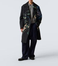 Woven from jacquard, this Dries Van Noten coat features a vibrant print for a signature statement. The double-breasted style is designed with notched lapels, flap pockets, and an oversized fit. Product Details - Material: 49% polyester, 37% cotton, 9% acetate, 5% other fibres - Care instructions: dry clean - Made in Poland - Designer color name: Black - Item color: black, multicolor - Lining: 60% cupro, 40% cotton - Notched lapel - Closure: double-breasted (four buttons) - Pockets: jetted, flap pockets, internal pocket - Fully lined - Item number: P01086435 Size & Fit - True to size - For a closer fit, we recommend taking one size down - Dropped shoulders - Oversized - Non-stretchy fabric - Height of model is 188cm-74" and wears a size L