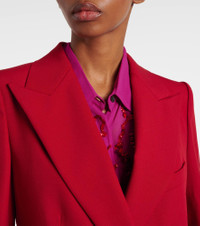 Product Details - Material: 100% wool - Care instructions: dry clean - Made in Morocco - Designer color name: Red - Closure: double-breasted (four buttons) - Pockets: flap pockets - Lining: 100% viscose - Item number: P01030383 Size & Fit - True to size - Shoulder pad inserts - Cinched waist - Non-stretchy fabric - Falls below the hip - The model seen in the picture is 178cm-5'10" and wearing a size FR 36