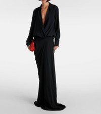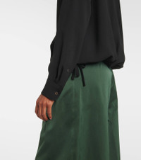 Product Details - Material: 73% acetate, 27% viscose - Care instructions: do not wash - Made in Hungary - Designer color name: Black - Cuff: buttoned - Hem: drawstring at the hem for an adjustable fit - Collar: classic (Straight point) - Item number: P00968470 Size & Fit - True to size - Designed for a loose fit - Adjustable at the waist - Non-stretchy fabric - Falls to the hip - The model seen in the picture is 178cm-5'10" and wearing a size FR 36