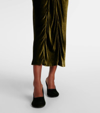 Juxtaposing a poetic sensibility with distinctive designs, Dries Van Noten creates styles that are always unique. This velvet midi skirt showcases a draped silhouette accented with an elegant front knot detail. Product Details - Material: 80% viscose, 20% silk - Care instructions: dry clean - Made in Poland - Designer color name: Khaki - Item color: green - Lining: 100% viscose - Closure: concealed zipper, zipped side, hook fastening - Item number: P01089449 Size & Fit - True to size - Non-stretchy fabric - The model seen in the picture is 178cm-5'10" and wearing a size FR 36