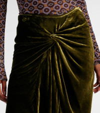 Draped velvet midi skirt