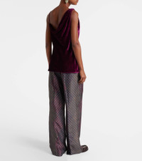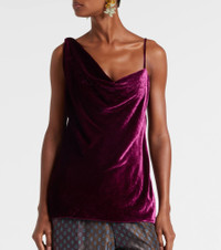 Crafted from purple hued velvet, this top from Dries Van Noten features an elegantly draped cowl neckline. The design is complete with contrasting straps and a slightly relaxed silhouette. Product Details - Material: 80% viscose, 20% silk - Care instructions: dry clean - Made in Poland - Designer color name: Violet - Item color: purple - Lining: 100% silk - Collar: V-neck - Item number: P01092137 Size & Fit - True to size - Low back - Straight fit - Non-stretchy fabric - Falls below the hip - The model seen in the picture is 178cm-5'10" and wearing a size FR 36