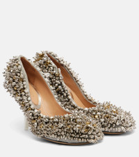 Embellished leather-trimmed pumps