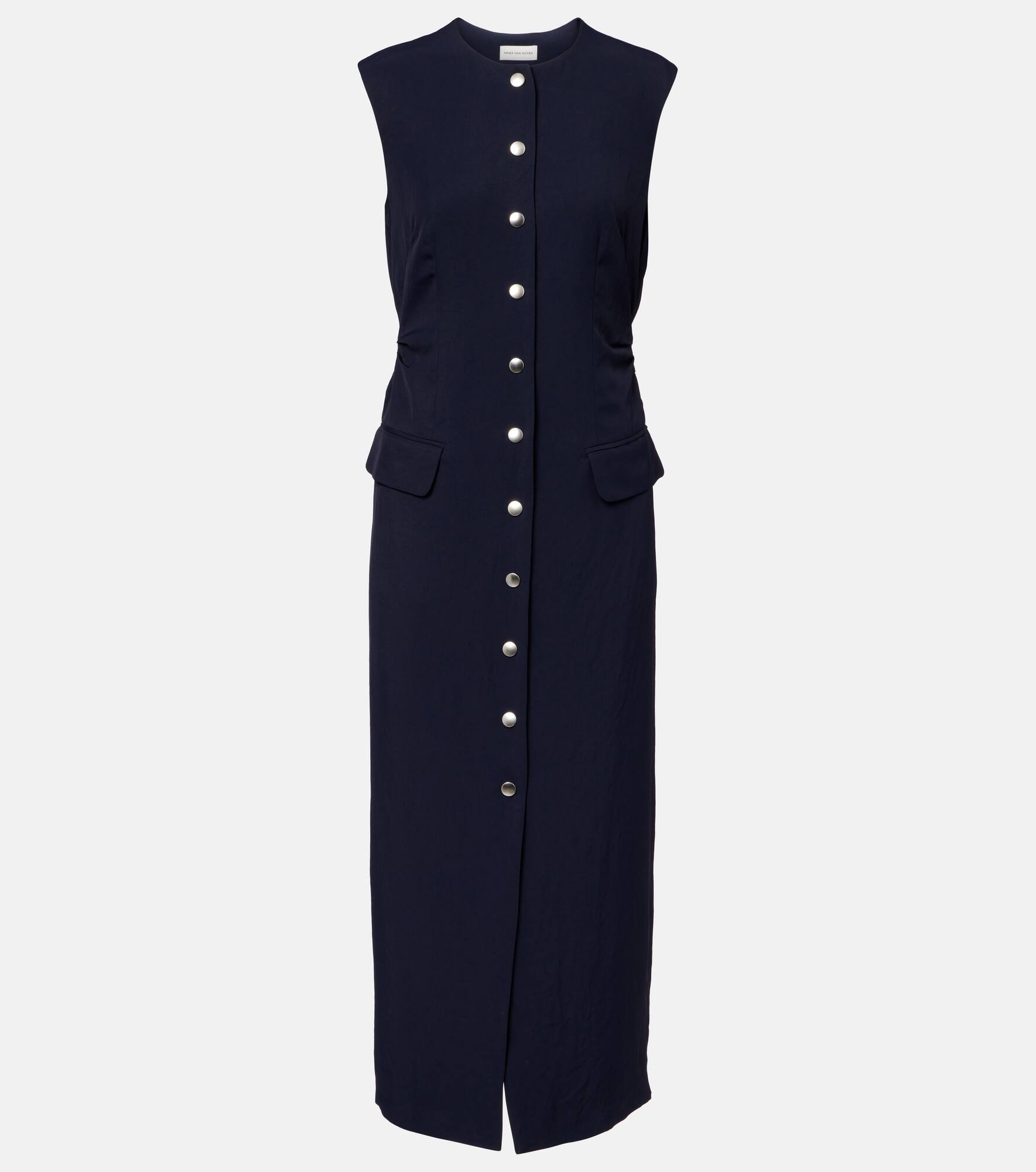 Product Details - Material: 100% acetate - Care instructions: dry clean - Made in Poland - Designer color name: Navy - Item color: navy - Lining: 100% viscose - Closure: snap-buttoned front - Pockets: flap pockets - Item number: P01030499 Size & Fit - True to size - Cinched waist - Non-stretchy fabric - The model seen in the picture is 178cm-5'10" and wearing a size FR 36
