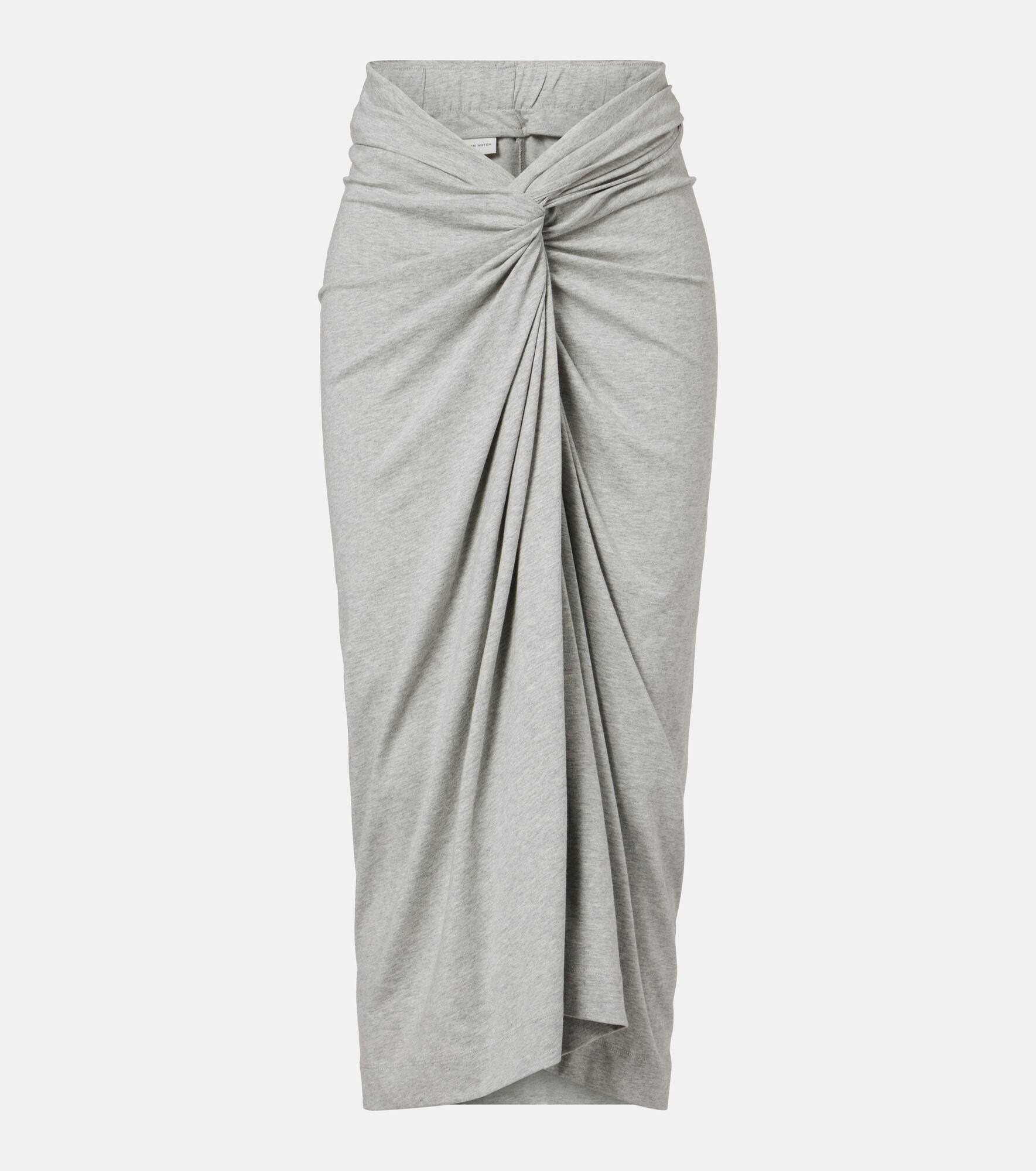 A pencil skirt with a twist, this versatile staple from Dries Van Noten is crafted from soft jersey for all-day comfort, and finished with gathering at the front. Product Details - Material: 100% cotton - Care instructions: machine wash at 30 degrees - Made in Turkey - Designer color name: Grey Melange - Item color: gray - Elasticated waistband - Item number: P01093197 Size & Fit - True to size - Elasticated waist - Stretchy fabric - The model seen in the picture is 178cm-5'10" and wearing a size XS