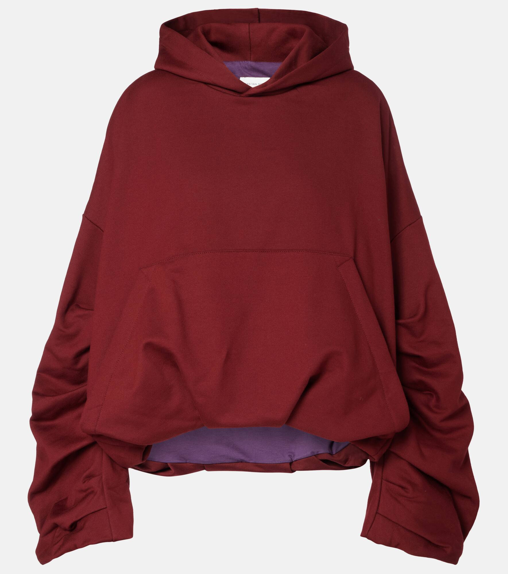 The Hannett hoodie from Dries Van Noten is a wardrobe essential for comfort, softness, and style. The piece is crafted from pure cotton and features slightly ruched sleeves and a kangaroo pocket at the front. Product Details - Material: 100% cotton - Care instructions: machine wash at 30 degrees - Made in Turkey - Designer color name: Ruby - Item color: burgundy - Hood - Pockets: kangaroo pocket - Item number: P01092186 Size & Fit - True to size - Extra-long sleeves - Dropped shoulders - Oversized - Non-stretchy fabric - Slightly cropped - The model seen in the picture is 178cm-5'10" and wearing a size XS