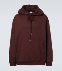 Dries Van Noten's Haxel hoodie is made from cotton and features a drawstring hood, kangaroo pocket, and ribbed trims. The relaxed silhouette reflects the brand’s pared-back approach to everyday essentials. Product Details - Material: 100% cotton - Care instructions: machine wash at 30 degrees - Made in Turkey - Designer color name: Burgundy - Item color: burgundy - Drawstring hood - Pockets: kangaroo pocket - Hem: ribbed - Cuff: ribbed - Item number: P01086468 Size & Fit - True to size - Dropped shoulders - Elasticated hem - Oversized - Non-stretchy fabric - Falls below the hip - Height of model is 189cm-74.5" and wears a size L