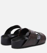 Step out with confidence in these platform sandals from Dries Van Noten. This striking pair showcases snake-effect straps, an open almond toe and sturdy rubber soles for bold, modern style. Product Details - Upper: leather - Lining: leather - Sole: leather insole, rubber sole - Toe shape: almond open toe - Made in Italy - Includes: shoe box - Designer color name: Dark Brown - Item color: brown - Item number: P01080895 Size & Fit - Fits slightly large to size - we recommend trying a half size smaller - European sizes - 3,5cm-1.5" platform (size EU 38)