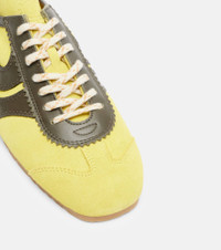 Juxtaposing a poetic sensibility with intelligent tailoring, Dries Van Noten creates styles that are always unique. Carefully crafted in Italy from yellow suede with green leather trims, these sneakers are a low-top pair with a retro-inspired design. Product Details - Upper: leather (suede) - Lining: leather - Sole: leather insole, rubber sole - Color: yellow - Toe shape: round toe - Made in Italy - Includes: shoe box, dust bag, extra laces - Designer color name: Yellow - Trim: leather - Closure: lace-up - Item number: P01154525 Size & Fit - True to size - Half sizes please take the next size down - European sizes
