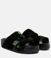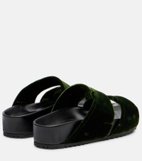 Leather-trimmed velvet slides