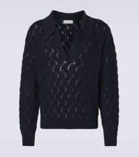 Juxtaposing a poetic sensibility with intelligent tailoring, Dries Van Noten creates styles that are always unique. Made from pure cotton, this navy polo sweater boasts an elegant V-neckline and an open-knit finish. Product Details - Material: 100% cotton - Care instructions: machine wash at 30 degrees - Made in Belgium - Color: blue - Designer color name: Navy - Collar: polo collar - Cuff: ribbed - Hem: ribbed - Item number: P01135327 Size & Fit - True to size - Dropped shoulders - Semi-sheer - Straight fit - Slightly stretchy fabric - Falls below the hip - Height of model is 192cm-75.5" and wears a size L