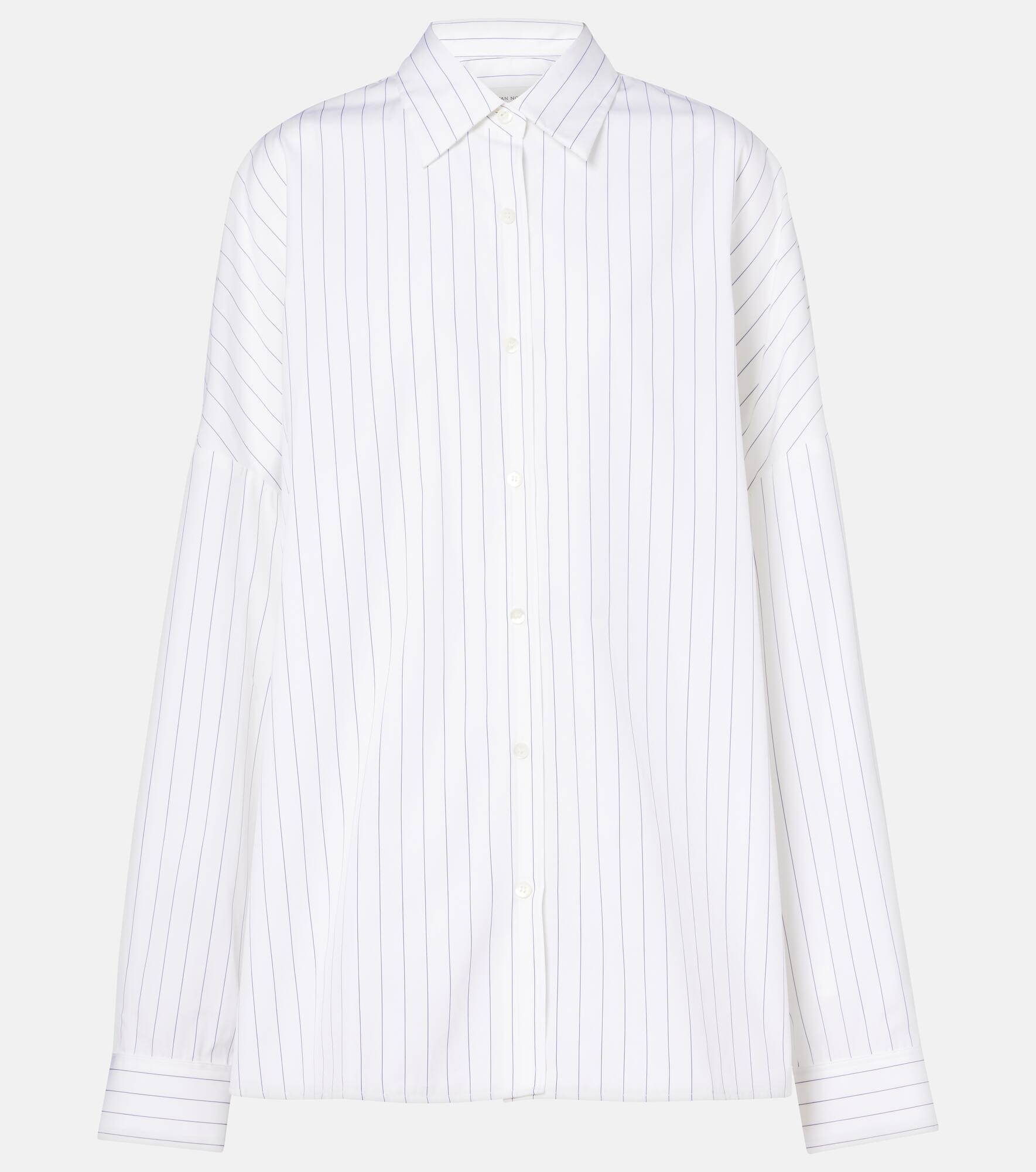 Crafted from crisp cotton poplin, this shirt from Dries Van Noten exudes casual elegance. This design features a sophisticated striped pattern, an oversized silhouette, a classic straight collar and a button placket at the front. Product Details - Material: 100% cotton - Care instructions: machine wash at 30 degrees - Made in Hungary - Designer color name: Navy - Item color: white, blue - Collar: classic (Straight point) - Closure: buttoned placket - Cuff: two buttons - Item number: P01092124 Size & Fit - Fits large to size - we recommend trying one size smaller - Dropped shoulders - Oversized - Non-stretchy fabric - Falls below the hip - The model seen in the picture is 178cm-5'10" and wearing a size XS