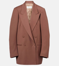 Product Details - Material: 100% wool - Care instructions: dry clean - Made in Morocco - Designer color name: Taupe - Item color: brown - Lining: 100% viscose - Closure: double-breasted (four buttons) - Pockets: side slit pockets - Item number: P01042401 Size & Fit - True to size - Oversized shoulders - Shoulder pad inserts - Oversized - Non-stretchy fabric - Falls below the hip - The model seen in the picture is 178cm-5'10" and wearing a size XS