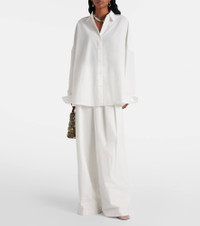 Product Details - Material: 58% polyester, 42% cotton - Care instructions: machine wash at 30 degrees - Made in Romania - Designer color name: White - Item color: white - Closure: zip, hook, and button fastening - Fit: wide-leg - Item number: P01056602 Size & Fit - True to size - Non-stretchy fabric - Wide-leg - The model seen in the picture is 178cm-5'10" and wearing a size FR 36