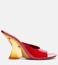 Patent leather wedge mules