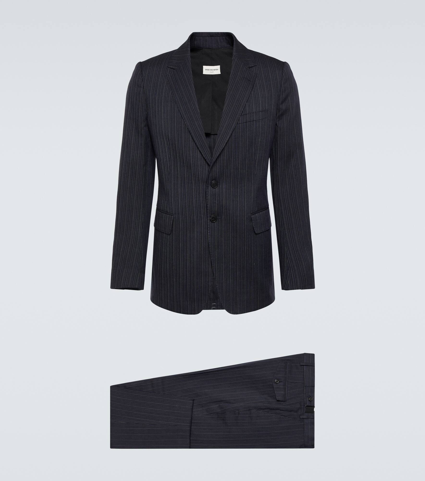 Product Details - Material: 68% cotton, 29% linen, 3% polyamide - Pockets: flap pockets, breast pocket, internal pockets, side slit pockets, back pockets - Belt loops - Notched lapel - Cuff: four buttons - Adjustable tabs at the waist - Hem: unfinished (ready for alteration) - Two-piece set - Care instructions: dry clean - Made in Morocco - Designer color name: Midnight - Lining: 100% cotton - Sleeve lining: 100% viscose - Closure: single-breasted (two buttons), zipper fly, button and hook fastenings - Item number: P00892261 Size & Fit - True to size - Shoulder pad inserts - Slim fit - Non-stretchy fabric - Falls below the hip - Slim-leg - Unhemmed for tailoring - The model in the picture is 185cm-6'1" and wearing a size IT 48